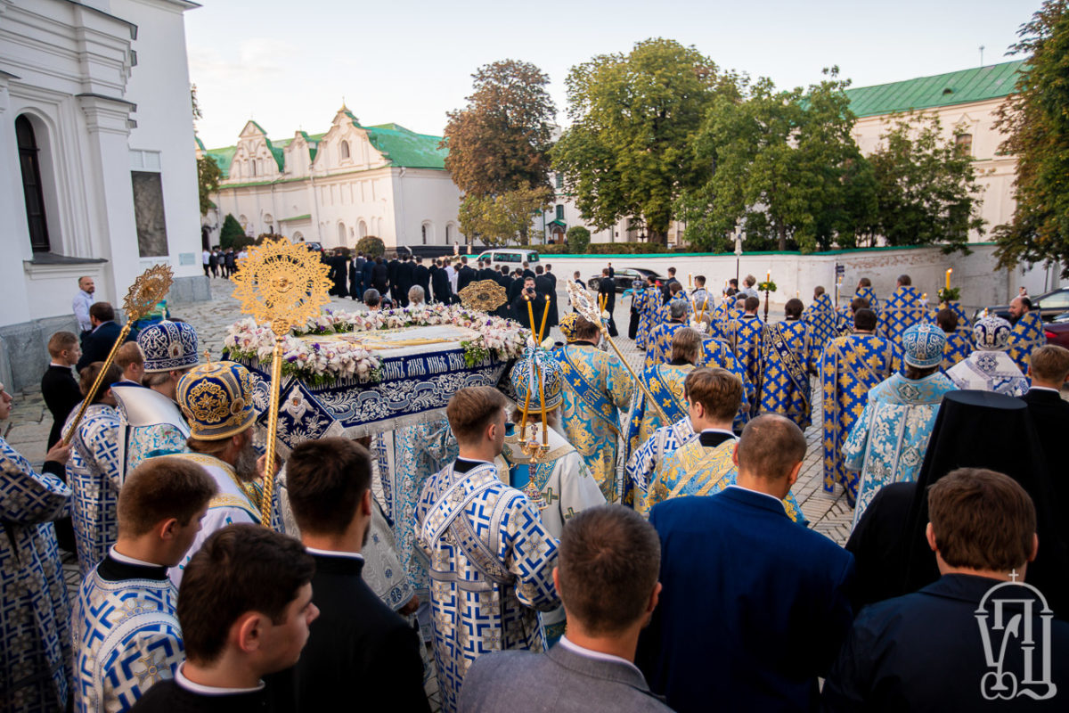 В Успенському соборі Києво-Печерської Лаври Предстоятелю співслужили намісник обителі митрополит Вишгородський і Чорнобильський Павел, керуючий справами УПЦ митрополит Бориспільський і Броварський Антоній, єпископ Баришівський Віктор, єпископ Білогородський Сильвестр, єпископ Вишневський Спиридон, єпископ Ірпінський Лавр, єпископ Бородянський Марк та духовенство Києво-Печерської Лаври.