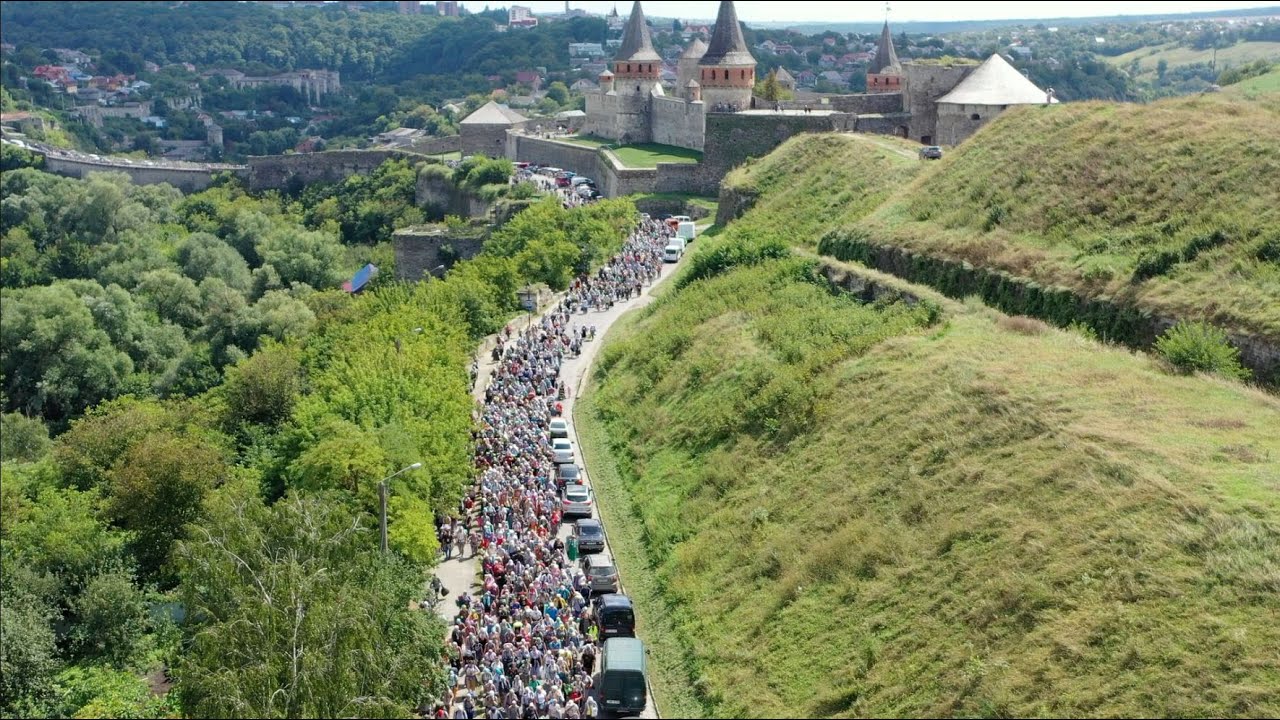 19 августа 2021 года из Каменца-Подольского в Почаевскую лавру вышел традиционный крестный ход УПЦ. В этом году здесь особенно много людей — свыше 40 000 верующих. Предлагаем масштабные кадры с воздуха.