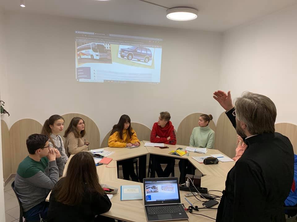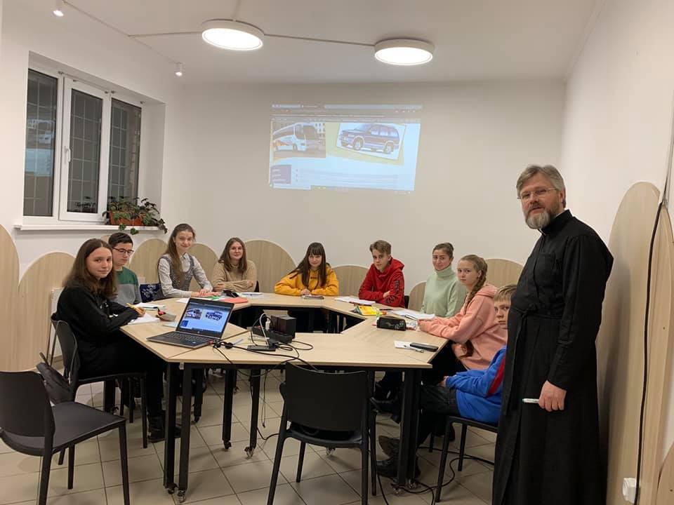Ви запитаєте, а яка користь для Церкви і чому священики мають цим займатися? Адже це ж саме може і має робити школа? Так, може. Але ми не заміняємо школу, ми в якійсь мірі її доповнюємо. А користь бачимо в наступному. По-перше, заняття відбуваються на церковній території. І діти це усвідомлюють. По-друге, частину предметів проводять священики. По-третє, перед уроком і після нього ми читаємо коротку молитву («Царю Небесний», і «Достойно есть»). Але при цьому ми не нав’язуємо віри. Ми нікого з дітей не примушуємо ходити в храм. Це по-четверте. При тому, що хоча більшість дітей прийшла до нас з церковних сімей, тобто це діти прихожан, але близько третини дітей – зі звичайних середньостатистичних сімей, які до храму ходять рідко. Але це для нас не проблема. Буває, що під час уроків чи після них ми спілкуємося на якісь цікаві для них, і близькі для нас – священиків, теми. Буває, що учні окремо підходять до нас з якимись запитаннями. Наше кредо: зацікавити, навчити, дати правильні орієнтири в житті. Через іноземні мови, і загалом через освіту, це можна робити і це досить легко робиться.