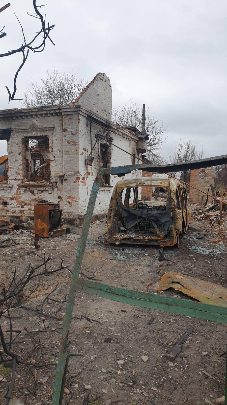 Церковний будинок знищено, каплиця розвалена, в храмі — пошкоджені куполи. Ледь говорив, виснажений, бо цілий день розносив їжу та ліки по хатах. Батюшка дістає з під завалів людей, ховає без домовин, на дверях , накриваючи покривалом. Попросив зателефонувати в п’ятницю до обіду(якщо все буде добре, тобто він буде жити) та домогти з ліками.
