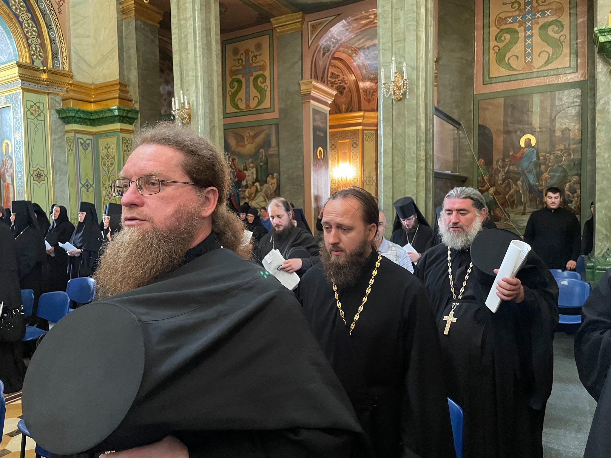 Прекрасна атмосфера, монашеська. Що це означає? Тиха, мирна, спокійна атмосфера. Ще до початку засідання ігумени та ігумені неформально спілкуються між собою, але не голосно. Немає шуму і гулу, як це буває на конференціях, де збирається три сотні учасників. Аж дивно трошки, що так багато учасників і немає звичного шуму. Я бував на багатьох конференціях і знаю як це буває, тому звертаю увагу на такі деталі.