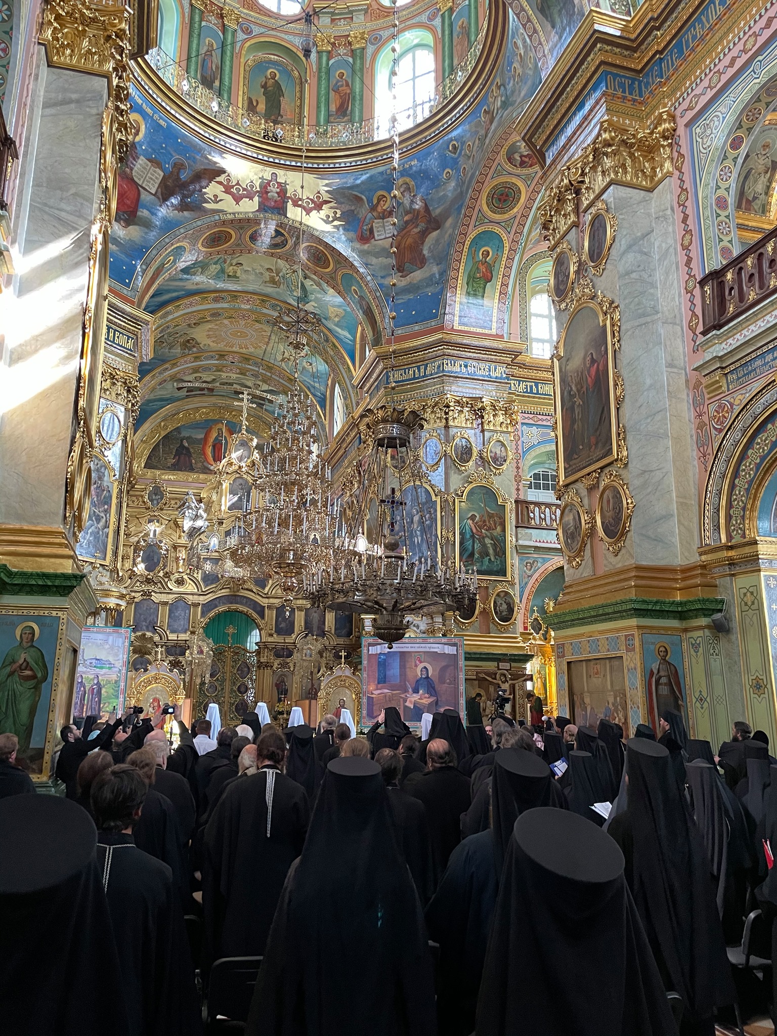 Засідання в Успенському соборі. В Троїцькому соборі, де зазвичай відбуваються подібні заходи, учасники не помістилися б, тому перенесли в більший храм. Учасники сидять по всьому храму, включаючи бокові нефи.