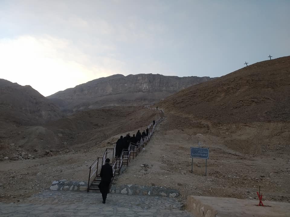 Сьогодні зранку-раненько, щоб поки не жарко, ми піднялися на гору в печеру преп. Антонія Великого. До печери ведуть 1290 сходинок, зроблених вже в недавні часи. Місцеві монахи в печері преп. Антонія щоночі служать Літургію. Місце вражає.