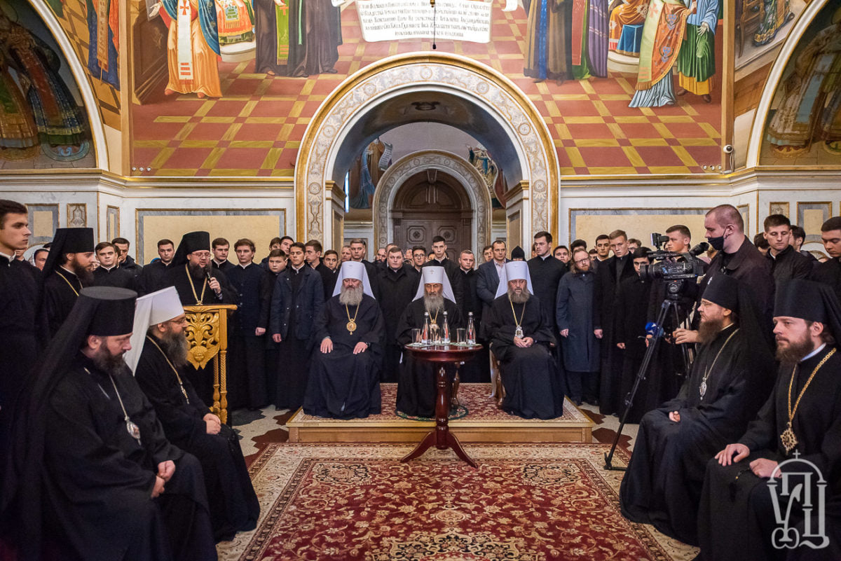 Ректор Київської духовної академії єпископ Білогородський Сильвестр виголосив вступне слово та попросив Предстоятеля звернутися до присутніх.