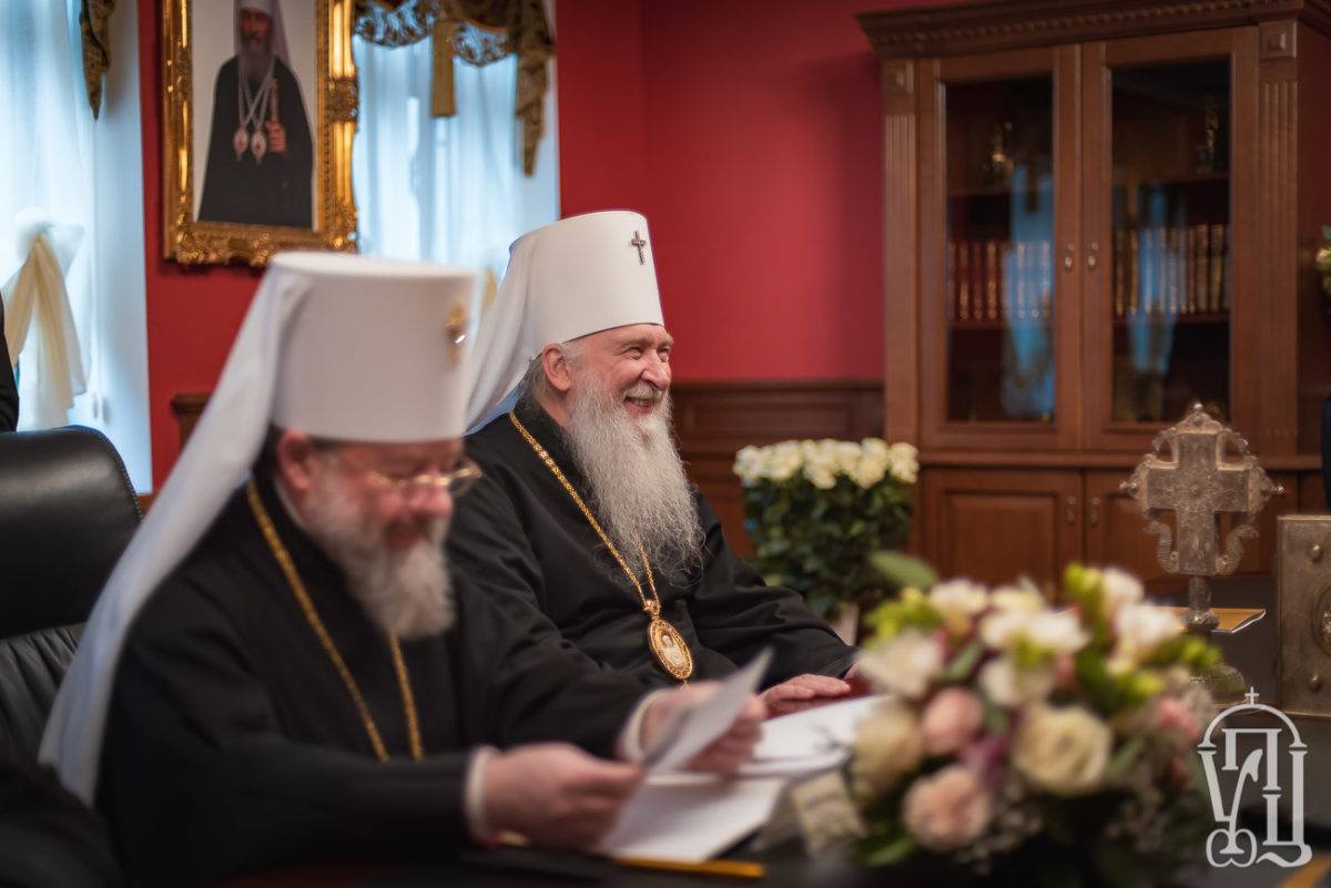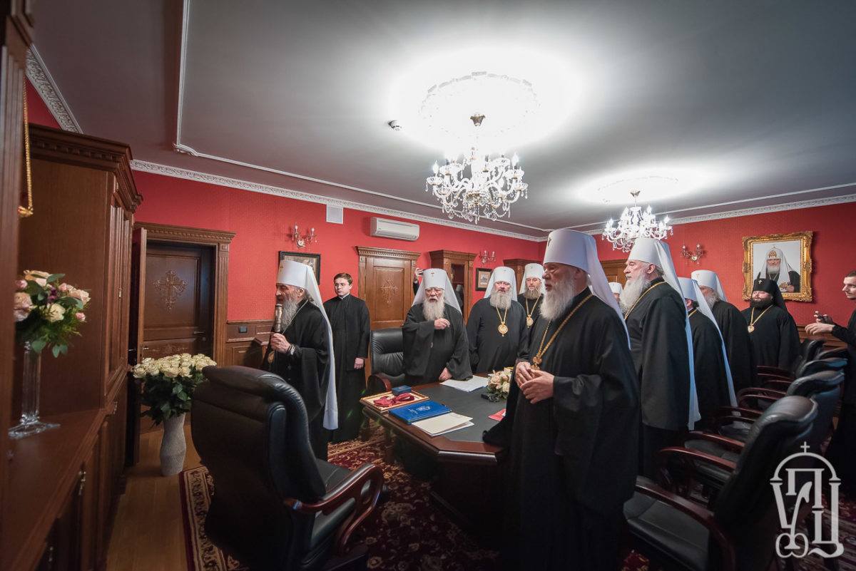 The meeting is headed by the Blessed Metropolitan of Kyiv and all Ukraine Onufriy. The permanent members of the Holy Synod are: Metropolitan of Odessa and Ishmail Agafangel, Metropolitan Simferopol and Crimean Lazar, Metropolitan of Khustsky and Vinogradivsky Mark, Metropolitan of Donetsk and Mariupol, Metropolitan of Kamgyanets-Podilsky and Gorodotsky Feodor, Metropolitan of Vyshgorod and Chornobyl, Metropolitan of Lugansky and Alchevsky Metropol, The secretary of the Holy Synod of the UOC, managing the affairs of the UOC Metropolitan Boryspil and Brovary Antony. Temporary members of the Holy Synod are: Metropolitan of Tulchynsky and Braclavsky Joanafan, Metropolitan of Vinnytsia and Barsky Varsonophia and Archbishop of Konotop and Glukhiv Roman.