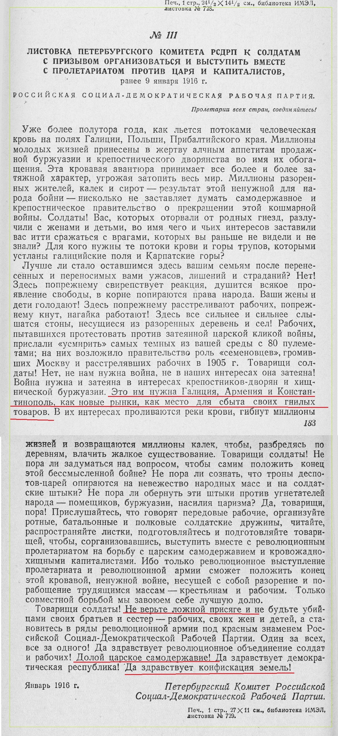 В кн.: «Листовки петербургских большевиков : 1902-1920 / Ленингр. Ин-и истории ВКП(б). — М.Госполитиздат, 1939-1957. — Загл. т. 3 : Листовки петроградских большевиков. Т. 2 : 1907-1917 / сост. М. Л. Лурье. — 1939. — VIII, 272.