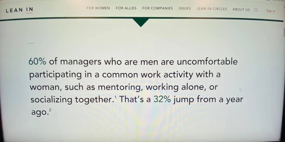 — 60 % менеджеров мужчин в США предпочитают избегать работать с женщинами — быть их менторами, работать один на один, «социализироваться»;